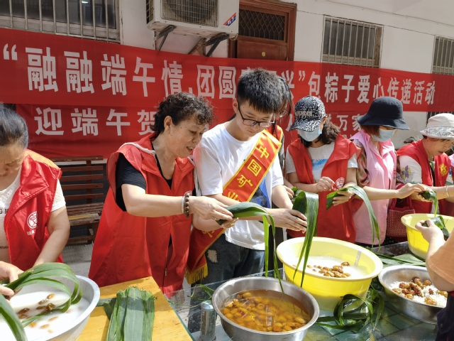 为迎接端午节的到来,弘扬中国传统文化,关爱关怀退伍老兵、老党员、贫困家庭,6月9日,中国矿业大学化工学院关工委组织师生赴奎山社区参加包粽子爱心传递活动。化工学院关工委秘书长陶冰冰老师及学生志愿者参加了此次活动。