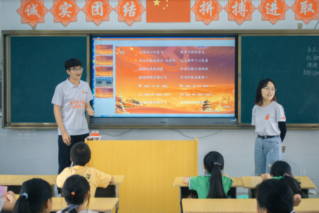 7月22日上午,中国矿业大学梦启支教团开展了红歌表演课程。该课程由支教团成员郑淇元老师主讲,班主任苏煜文老师辅助。