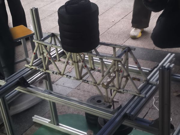 上午8时起,各参赛队伍陆续携带由纸牌搭建完成的桥梁模型抵达青创广场,进行现场加载测试,并提交纸质版设计说明。在第一级加载中,大部分桥梁结构稳定,顺利晋级。随着加载级数增加,留存下来的桥梁模型越来越少。各队成员小心翼翼地添加砝码,屏息凝神,都期盼自己的桥梁能展现出最优的稳定性。最后,工作人员从加载表现、设计理念与模型美观度三个方面进行综合评分,并依据总分排名决出各项奖项。至此,大赛圆满落幕。
