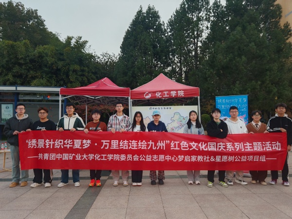 为纪念中国人民抗日战争暨世界反法西斯战争胜利80周年,2025年10月18日至2025年11月7日,化工学院团委公益志愿中心联合“星愿树”公益项目组举办“绣景针织华夏梦,万里结连绘九州”主题活动。并邀请矿业工程学院心青年志愿者协会等12个单位协办。