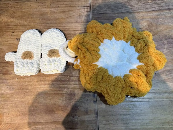 志愿者制作的手套和座垫