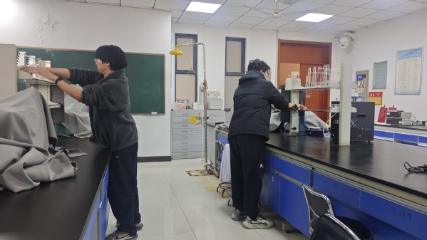 下午4时,志愿者们在化工学院B503实验室集合并签到。活动负责人提前与实验室管理老师沟通,明确清扫范围、重点区域及安全注意事项。志愿者们分工明确,开始进行门窗和仪器擦拭、实验台整理、地板清洁等工作。清扫过程中,志愿者们秉持认真负责的态度,各司其职、互相配合。经过两小时的辛勤付出,原本略显杂乱的实验台变得整齐有序,地面干净无污,仪器摆放规范,实验室环境焕然一新。