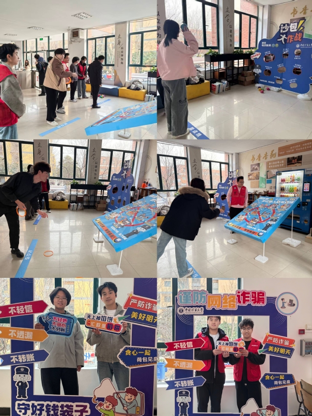 活动现场精心设置了“反诈科普”“反诈能力大测试”“玩套圈,防圈套”“反诈沙包大作战”等主题互动区域,工作人员用真实案例向同学们普及反诈知识,并帮助同学们完成反诈主题互动区域体验,现场气氛热烈,同学们踊跃参与。此次反诈趣味宣传活动,打破了传统反诈宣传的刻板模式,以学生们喜闻乐见的方式将反诈知识巧妙融入互动体验中,有效提升了学生防诈反诈能力,进一步筑牢校园安全防线。