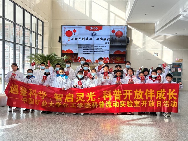 1月11日,中国矿业大学化工学院科普流动实验室寒假中小学开放活动在化工楼B313圆满举行。本次活动依托煤炭洁净加工与高效转化国家级实验教学示范中心、教育部重点实验室及国际合作联合实验室等高端科研平台,旨在通过优质资源的开放共享,激发青少年对基础科学的探索热情。活动紧扣“从动手到暖心,从实验到真知”主题,将化学原理与趣味实践深度融合,吸引了多所中小学的学生踊跃参与。