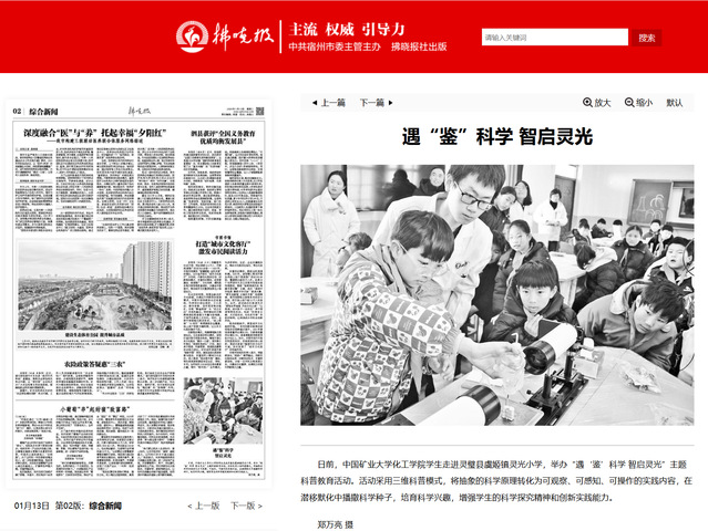 《拂晓报》在报道中重点关注了我院科普资源下沉对乡村教育的赋能价值,引用灵光小学校长付振雪的评价,高校优质科普资源进校园,不仅填补了乡村小学科学实践教育的短板,更点燃了孩子们的科学梦想,为乡村教育注入了科技动能。报道同时肯定了我院科普流动实验室在践行社会责任、推动科普教育常态化方面的积极作为,展现了高校服务地方基础教育发展的责任与担当。