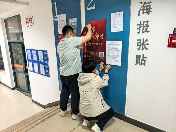 志愿者清除过期的海报