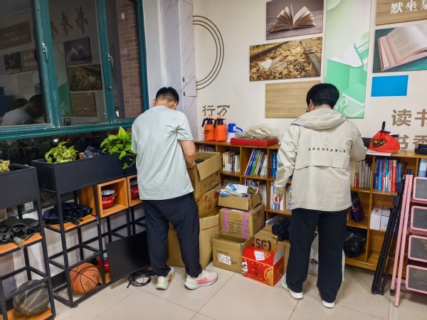 志愿者整理杂物和书架