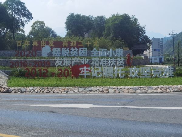 下午2时,实践团成员抵达骆驼湾村村口。村口路边有一条由鹅卵石围成的阶梯式草坪,四阶台面上放置着四块立体句牌,从下往上依次为:“2012-2015 牢记嘱托,攻坚克难”、“2016-2019 发展产业,精准扶贫”、“2020 摆脱贫困,全面小康”和“百年再出发,喜迎二十大”。台阶式设计寓意着骆驼湾村全程参与乡村振兴的各个阶段,醒目地展示出近些年来村庄的发展历程。随后实践团成员拜访“骆驼湾一号院”——这是习近平总书记在骆驼湾村走访的第一家贫困户。走进客厅,一张照片吸引了实践团成员的注意∶习近平总书记正盘腿坐在炕头上,亲切地拉着乡亲的手唠家常。在习近平总书记对乡村振兴的殷切期望和当地政府的不断努力下,曾经村里的朽桩泥墙已不见踪影——木质门框贴着崭新的春联,檐角挂着灯笼,小院样变成了典型四合式,黄土石砖砌就的厢房朴素整洁,灶台炕床一应俱全。如今,骆驼湾村已经摆脱了落后的传统农作方式,“家庭手工业”、“生态旅游”、“规模养殖”、“中药材”、“高效林果”和“现代食用菌”已经成为骆驼湾村发展的支柱产业;坐落于村庄中一排排棚户,让实践团成员真切的感受到了乡村振兴所带来的翻天覆地的变化:村民们齐心跟党走,在党的领导和支持下艰苦奋斗,开辟出了新天地,也开启了新生活。