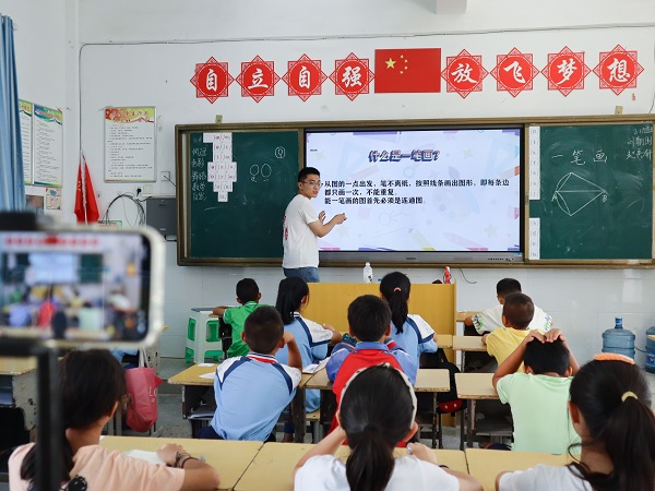 8月11日上午,中国矿业大学梦启支教团为金沙县西洛街道彩虹小学梦启1班的同学开设了一笔画课程,该课程由支教团成员孙明锐主讲。