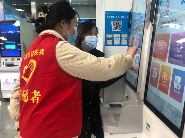 志愿活动开始后,吴倩同学对志愿活动内容进行了基本了解,主要包括:协助指导患者使用自助挂号缴费系统、引导老年患者前往绿色通道、协助医院工作人员维持就诊秩序等。在熟悉了自助挂号缴费机器的具体操作和医院各科室的位置后,吴倩同学正式开始了志愿工作。先后协助多位老年就诊者使用自助挂号机器、为医护人员进行常规消杀工作、帮助老年患者查看就诊结果和报告、并提供挂号咨询与指引、维持人工挂号交费处的队伍纪律等。一天的志愿活动结束后,同行的志愿者们纷纷表示,“如今有许多自助机功能复杂、科室位置设计也较为复杂,让很多老年人无从下手,当子女不在他们身边时,需要更多像我们这样的志愿者去帮助他们,这样才能让老年人更顺利的就医,并且提升老年患者对医院的好感度和就医速度,同时,能为他们提供指引服务是一件让人特别开心的事情。”