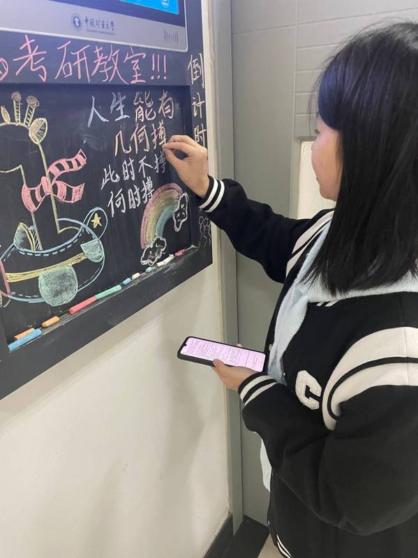 有希望在前方,为梦想而拼搏,是每个考研人的写照。为鼓励考研学子认真备战,12月5日至14日,化工学院公益志愿中心公益践行部与人文与艺术学院青年志愿者协会、低碳能源与动力工程学院青年志愿者协会等十个协办学院主办了“黑板助卿,研榜提名”活动,本次活动面向中国矿业大学全体同学开展。