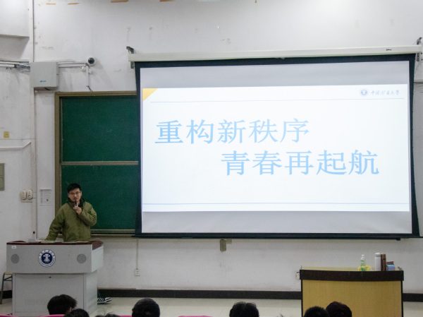 大会伊始,由滕泽川老师作上学期期末学业总结,详解各班成绩情况并进行横向比较,督促各班班委及同学进行反思,进一步完善学风建设,同时也着重强调了考试纪律问题,提醒同学们找准目标,有针对性地平衡好学习与生活。随后,由张肖思睿老师就心理动态方面向同学们分享方法,鼓励大家勇敢做自己;在生活尤其是宿舍卫生方面,也提出了一些建议,做出相关要求,强调春夏之际,注意预防病毒、开窗通风;在个人安全方面提醒同学们谨言慎行,防范各类诈骗;针对党团建设,强调了社会实践的重要性,提醒同学们要谋定而动,尽早做出规划,并对日常学习及管理做出详细要求。最后,任义老师对会议主要内容做出整体回顾,再次强调学习的重要性。他提出,面对新形势和新挑战,我们2022级同学们的要务是“重构新秩序,青春再起航”,趁春暖花开,多运动,勤学习,专注个人,融入集体,提前做好学业规划,思考专业选择,为自己的未来努力。