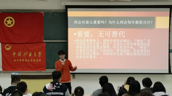 2023年3月29日,中国矿业大学化工学院“第十四期青年马克思主义者培养工程”第二次培训在博学1号楼C区102举行。本次培训活动以“聚焦两会精神,共话青春使命”为主题,由黄冬艳主持,面向第十四期青年马克思主义者培养工程全体学员开展。