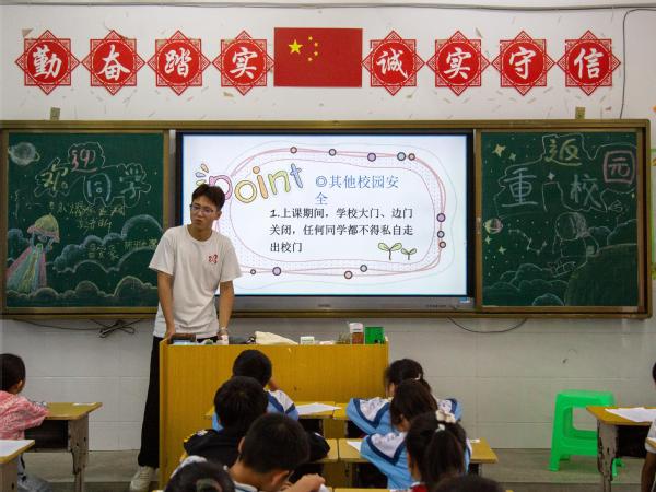 7月19日上午9时,中国矿业大学梦启支教团在贵州省金沙县第九小学(金沙县彩虹小学)开展安全教育主题班会,旨在提高孩子们的安全防范意识,了解防火防溺水等方面的自救常识。此次班会由梦启支教团成员余功和、方一诺和肖雪怡讲授,梦启四班全体成员参加。