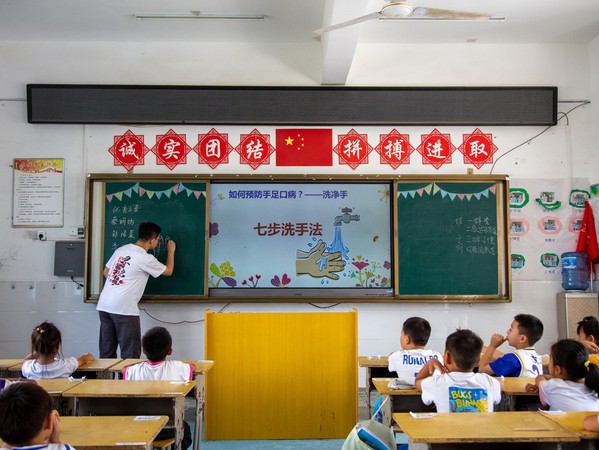 7月20日上午,梦启支教团于贵州省金沙县第九小学(金沙县彩虹小学)开展传染病的认识与预防课程,该课程旨在让学生了解常见传染病,掌握基本的预防方法。本次课程由于子文主讲,授课对象为梦启二班学生。
